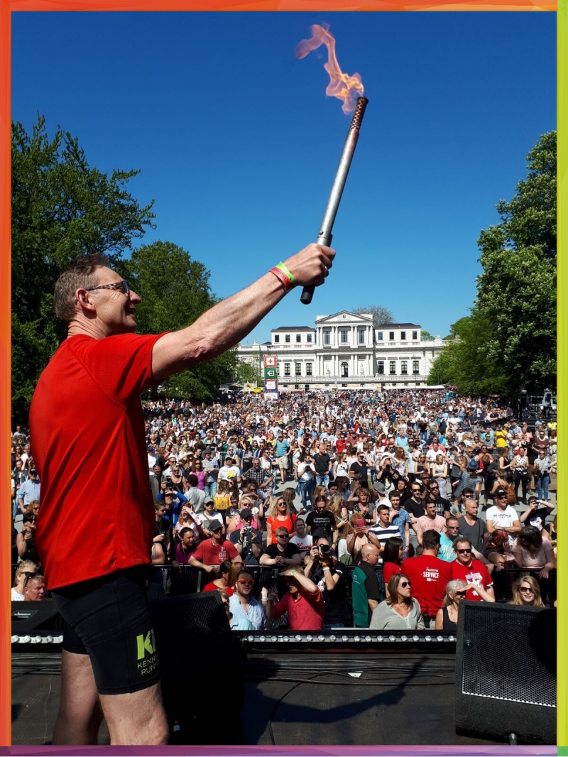 Na de herdenking vertrokken wij naar Wageningen om het bevrijdingsvuur op te halen en het in estafettevorm terug naar Haarlem te brengen. Als enige geboren en getogen Haarlemmer in het team kreeg ik de eer om het vuur te overhandigen aan de organisatie. Het moment dat ik met de andere lopers, begeleid door de stormlamp met het vuur, over de Dreef richting het podium rende, was magisch. De burgemeester was er niet, maar de voorzitter gaf mij de eer om het bevrijdingsvuur aan te steken.